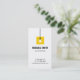 A business card with a hanging light bulb icon over a yellow square. Colour palette of black, white and yellow. Perfect for electricians and those providing electrical wiring and lighting fixtures installation services. Personalize with your business information in the easy to read text templates provided.