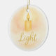 A softly glowing watercolor candle with the word Light in golden calligraphy. Symbolizing hope and divine guidance, this elegant ornament adds warmth and meaning to any tree.