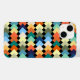 This phone case has a geometric design of light-coloured diamonds overlapping each other on a field of black.
