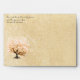 Pale Coral Heart Leaf Tree with Two Whimsical Doves Flying On a Swirly Faux Burnt Parchment Card