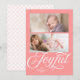 Stylish Joyful Holiday Photo card that can showcase 2 of your photos against a light coral pink shade background and featuring the word "Joyful" in beautiful cursive script. Card includes a light coral pink shade geometric pattern against a white background back side. Check out other holiday items here https://www.zazzle.com/collections/holiday_christmas_new_year_cards-119015800351034065?rf=238364477188679314