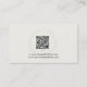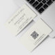 Stylish and sophisticated attorney at law office business card template featuring a cream striped texture background. Accented with a subtle scale of justice watermark, ideal for use by corporate law firms. Includes a QR code for added convenience..