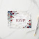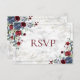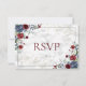 Modern and trendy, this wedding invitation RSVP design features watercolor eucalyptus greenery and dusty blue and burgundy marsala floral arrangements, with faux gold dust, over a faux white marble texture, with "RSVP" in a matching burgundy colour. To remove meal choices, we have create a how-to video for you here: https://youtu.be/ZGpeldQgxoE Part of a matching wedding set. Copyright Elegant Invites. All rights reserved.