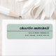 Light dusty sea green or custom colour return address labels with a thin border between your name and return address and the text aligned to the right. Your name and surname is in a bold, retro font. Fonts and colours can be customized with the design tool.
