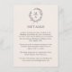 A tasteful and classic choice in wedding details enclosure cards, this design in neutral light ecru beige conveys a simple elegance in its text layout and classic style. A simple open laurel wreath of sketched leaves surrounds the monogram initial of the bride and groom. The elegant yet simple text template has a sample text template to personalize with your desired information. You can include hotel accommodations available to your guests, your wedding website, special events, transportation info or whatever details you wish to provide your guests. It is available in a variety of popular colours (shown here in the deep sage green and ecru) as well as many different paper types and weights.