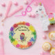 Light Goldendoodle  Dog Fun Paint Splash Art Party Paper Plate,  Have fun, make a mess, play with a cute Light Goldendoodle Dog , what a way to celebrate your artistic child's birthday. Our colourful paper plate with rainbow splashes,is just waiting for that big chunk of birthday cake. Edit the name on the top-just use the PERSONALIZE option. Our fun art party paper plate features a Light Goldendoodle Dog wearing an artist beret, and a purple polka dot bandana decorated with paint. He is already in a party mood and has gotten into the paint and is leaving colourful footprints as he goes. Paint splashes everywhere - what could be more fun.This unique art party paper plate with a Light Goldendoodle Dog is perfect for both girls and boys. You will find this art party paper plate along with matching invitations, stickers and thank you cards in our FUN ART AND DOGS BIRTHDAY PARTY collection in our store, designed exclusively for us by noted stationary artist, Nancy Lambert. For help or more custom items, contact us.