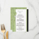 Light green and black polka dots with FAUX Green Ribbon and Bow Wedding Menu Cards. Personalize with your own information. There is a matching Invitation and RSVP card available. If you want other matching products, please contact me through my store. If you want to move the text, or change the size, font, or colour, click Customize It. Please Note: This is not a real ribbon or bow, but a graphic image.