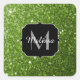 Light green greenery glitter sparkles Monogram Square Sticker
