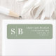 Étiquettes d'adresse de retour minimales simples vert clair monogrammé Mariage. Ce design mariage moderne ou étiquette de adresse d'évènements est simple et élégant avec un monogramme simple et solide arrière - plan et tendance couples élégants. Montré dans la nouvelle couleur Mariage. La collection Minimal Solid Color Mariage est sûre de rendre votre mariage mémorable et beau ! Pour en savoir plus, recherchez les collections mariages 2022 de Chic Paperie pour voir toutes les tendances design et couleurs mariages de cette année.