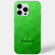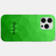 Light green geometric mesh pattern Monogram iPhone 15 Case. Personalize with your custom initial and name. Triangle geometric mesh with light to dark green ombre gradient.
