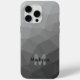 Light grey geometric mesh pattern Monogram iPhone 15 Case. Personalize with your custom initial and name. Triangle geometric mesh with Light grey ombre gradient.