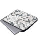 The sleeve is made of nice feeling material and seems very durable. I'm not sure how easy it'll be to clean, but the construction seems sound and the fabric is quick thick. I also like the double zipper. The printing is lovely and appears durable. The white on black contrast is nice, and the design very elegant.