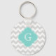 Light Grey White Chevron Aqua Quatrefoil Monogram Keychain