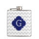 Light Grey White Chevron Navy Quatrefoil Monogram Hip Flask