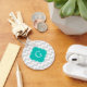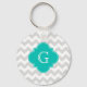 Light Grey White Chevron Teal Quatrefoil Monogram Keychain