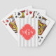 Light Grey White Stripes Coral Red Monogram Label Playing Cards