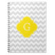 Light Grey Wht Chevron Yellow Quatrefoil Monogram Notebook