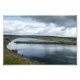 A compelling landscape shot showcasing the quiet majesty of a reservoir. The scene is framed by a rustic railing, leading the eye across a winding stream feeding into the larger body of water. Under a captivating cloudy sky, distant power pylons add a unique industrial-meets-nature esthetic. This image evokes feelings of contemplation and the subtle power of both natural and man-made structures coexisting. Ideal for anyone seeking a distinctive, thought-provoking natural scene with a touch of modern presence. This image can be edited and transferred to multiple products of your choosing.