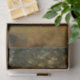This design features a painting by Albert Bierstadt (1830–1902). It shows a beautiful landscape in the American West with a bright sunset flooding the scene with sunlight. There are some deer standing beside a pool of water in the forest.