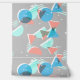 Explore a chic, fashionable, and diverse minimalist contemporary design. Perfect for the artistic innovator, vintage retro art aficionados, or abstract digital geometric pattern lovers. The eye-catching arrangement of geometric semi-circles, triangles, and stripes in modern teal blue, soft mint green, and peach red hues set against a grey backdrop highlights your distinctive style. This design graces a variety of contemporary home decor products, ideal for bringing an elegant flair to your master or children's bedroom, kitchen, nursery, living room, woman's retreat, college dormitory, condominium, studio, or apartment.