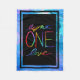 The front of the card displays a galaxy themed background, with a fancy border surrounding a rainbow font spelling out "Light, One, Love". The nebula blue, purple, teal background is hand painted with water colour and has a dash of sparkles scattered across (sparkles are on the original work and will not be included on this product), and rainbow font "Light, One, Love" was hand painted with water colour.