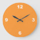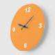 A simple wall clock with a light orange background and large white numbers marking the 12, 6, 9 and 3. For any orange decor kitchen or room. Click Customize It to add your custom text, change background colours and more.