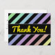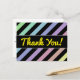 This postcard design features a pattern of stripes coloured various light pastel colours, with black stripes in between them. It also features the message "Thank You!" on the front in yellow script-like text, along with a personalized message of gratitude on the back.