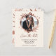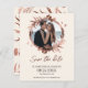 A simple and elegant wedding Save the Date card featuring chic floral wreath and rose gold foil design that is easy to personalize with your details. The card has a modern boho style, customizable calligraphy, handwritten font, and a wreath photo wedding invitation.
