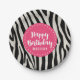 Light Pink and Black Zebra Stripe Birthday Party Paper Plate