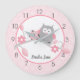 Light Pink and Grey Happy Owls Girl Nursery Large Clock
