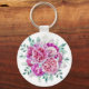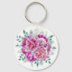 Delicate watercolor bouquet of lush light pink and purple peonies with green and turquoise leaves.