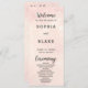 What adds a touch of enchantment to this wedding program are the ornate script fonts used for the words "Welcome," "Ceremony," and "Wedding Party." These decorative elements infuse the program with a sense of celebration and romance, perfectly contrasting with the simplicity of the block font. The interplay between the elegant script and the straightforward text creates a harmonious balance, capturing the essence of modernity and timeless allure.