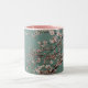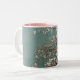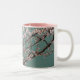 Light pink cherry blossoms on turquois background Two-Tone coffee mug