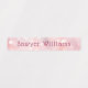 Name labels featuring your name in maroon on a light pink, soft-focused background with glistening light bokeh.