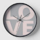 Light Pink Love Letters Typography Grey Background Clock