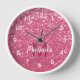 Monogram wall clock Personalize with your custom name. Beautiful girly glamourous soft light pinkish purplish red shiny glitters sparkles trendy modern colour. Photo of magenta sparkles glitter! Colour of the year in faux sparkles!