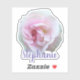 A close-up photo of a beautiful light pink rose with a template for first name.