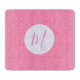 Glass cutting board shows a fractal background of light pink squiggly squares. Pink initial resides inside a white circle of squiggly squares. Lovely Mother's Day or birthday gift for mom.