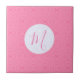 Ceramic decorative tile shows a fractal background of light pink squiggly squares. Pink initial resides inside a white circle of squiggly squares. Lovely Mother's Day or birthday gift for mom.