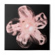 Hand-made sewn pink flower from tulle with pearl on the middle of flower on black background on Ceramic Photo Tile for kitchen and home decor. *Every things you see on the products are hand made, but you must know that you get a photo!