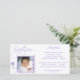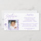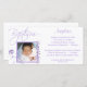 This elegant and contemporary Baby Baptism invitation has light purple text and lovely scroll work surrounding the photo frame. There is plenty of customizable text for you to add your party information. Just upload your baby's photo and your task is complete!