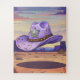 Add a touch of western charm to your celebration as a gift, party favour or party game with this scenic jig saw puzzle! This design features a light purple cowgirl hat floating in a picturesque desert scene-sweet, sassy, and full of rodeo-ready spirit. Whether you're throwing a cowgirl-themed birthday, baby shower, or country-chic bash, this soft and stylish western icon brings just the right amount of flair to your celebration.