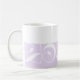 Customizable white mug with a lilac decorative band (Thank You is not customizable). You can easily add and change text (font, size, colour and position) by clicking the customize button. Other models are available.