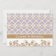 Elegant and beautiful french Moroccan inspired couple's wedding shower invitations with a repeating light purple lavender and gold geometric pattern design and gold hued floral flourishes. This upscale and luxe looking invite is perfect for any formal, exotic, Moroccan, Arabian Nights or Aladdin themed couples engagement shower. The back of these custom, fancy frame invitations and announcements can be personalized with the soon to be bride and groom's names on the back of the invitation. Artwork and design © Chrissy H. Studios, LLC. All Rights Reserved.