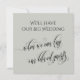 This design features the text "We'll Have Our Big Wedding" which is followed by "when we can hug our beloved guests" in a gorgeous, swirling script font. Use the template fields to add your personal details and change any of my draught wording to suit your needs and situation. If you haven't set a date yet, you can click to further customize and remove the unneeded lines. Feel free to change the background to any colour you prefer. If you'd rather have my help with customizing, please do not hesitate to reach out. // 119 //