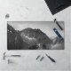 Light shining on majestic mountains desk mat