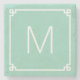 Light Teal and White Greek Key Border Monogram Stone Coaster