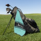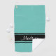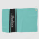 This design has a light teal background with black and light teal stripes. The name is in a script font and can be customized using the template field.