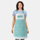 White and light teal blue damask pattern with white scalloped borders apron. On the upper and the bottom parts of the apron there are white bands with scalloped edges. You can personalize it with your name.