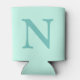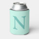 Light Teal Initial Letter Trendy Pastel Mint Blue Can Cooler